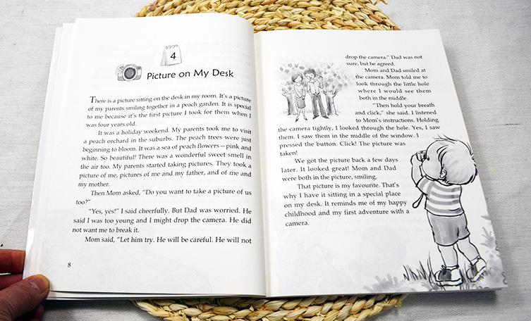 – Mỗi ngày một truyện, mỗi tháng là một cuốn gồm 30 truyện. Một năm 365 ngày ngày nào cũng đọc một cuốn truyện thì trình độ tiếng anh của con lên lúc nào không biết.